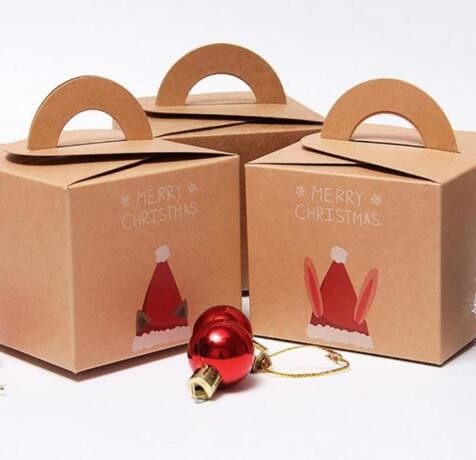 جعبه هدیه کریسمس مقوایی کرافت قهوه ای بازیافتی با دسته