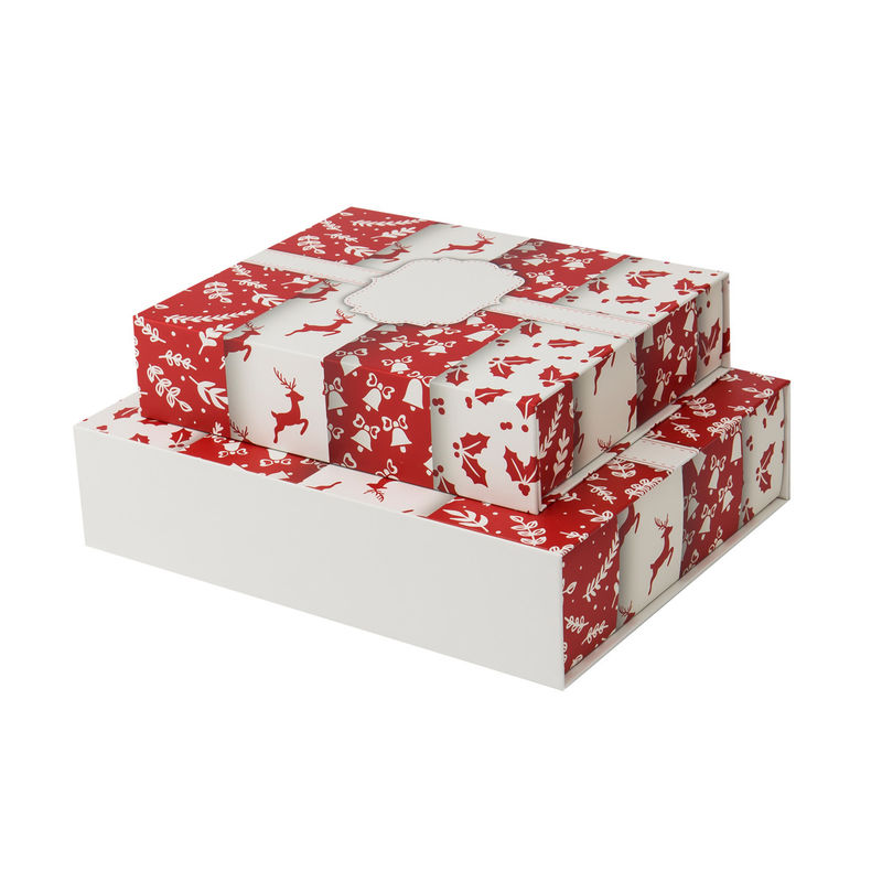 جعبه هدیه با پایه و درب روبان کریسمس، طراحی سفارشی، چاپ CMYK