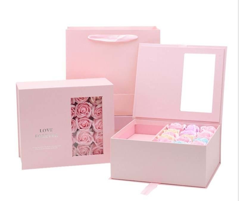 Custom Color Matte Pink Handmade Box With Clear Window Tea Gift Box With Magnet
